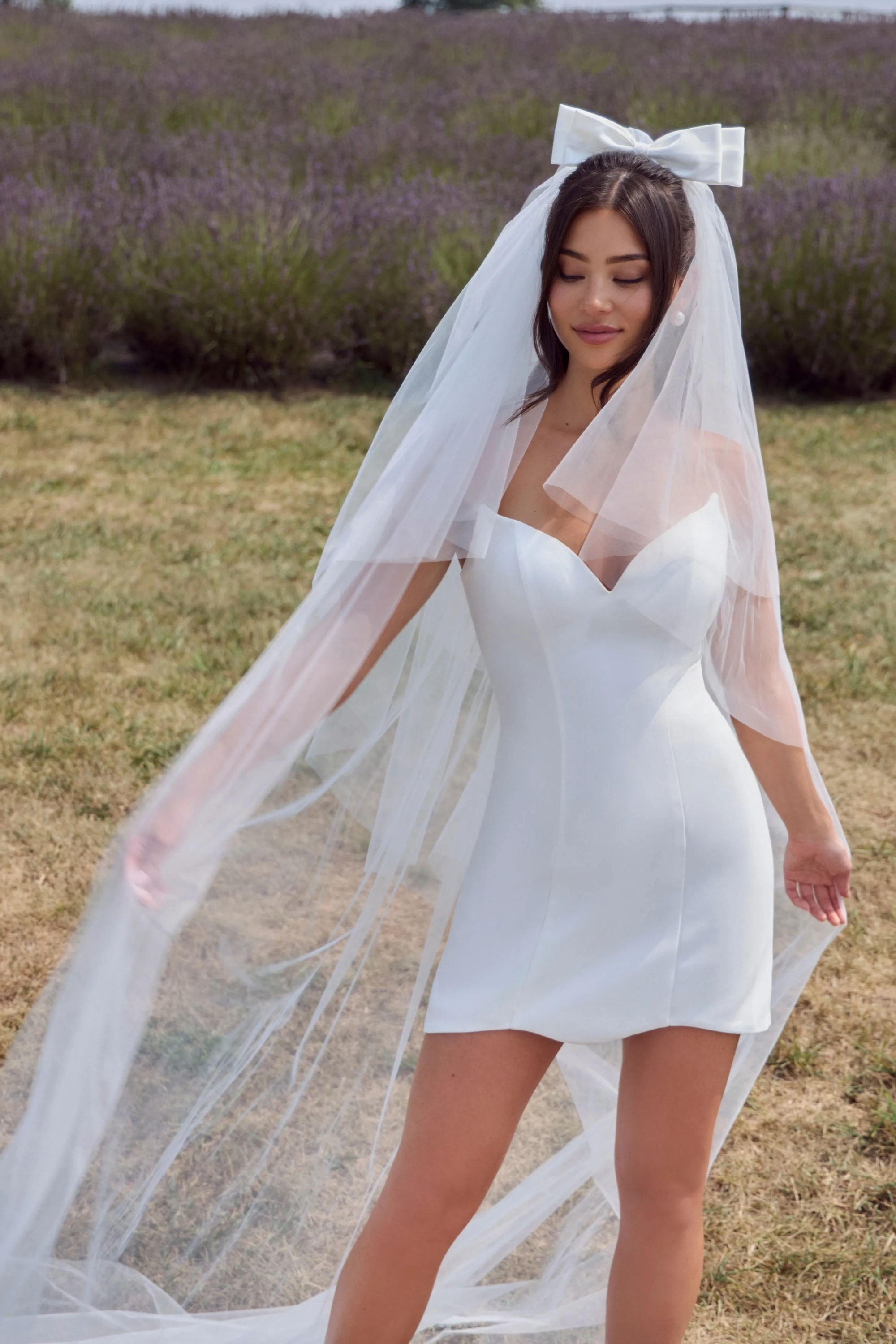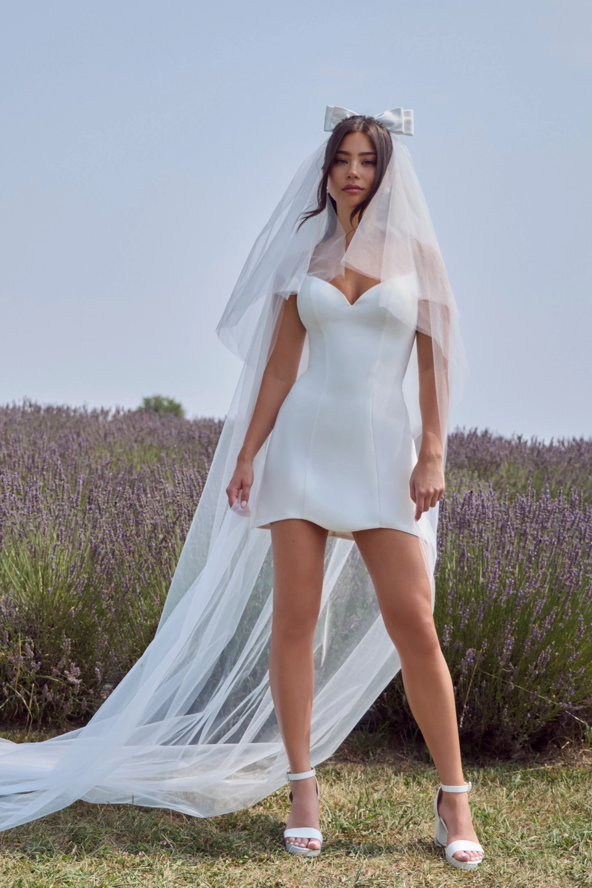 Isabeau proves that simplicity can be the ultimate statement. This short A line wedding dress flatters with a strapless V-neckline and smooth crepe that shapes the body while feeling soft against the skin. Her short hemline keeps things playful and fresh, whether you’re saying “I do” by the ocean or twirling at your reception. Lightweight, romantic, and versatile, she’s a modern classic for the bride who wants elegance without excess.